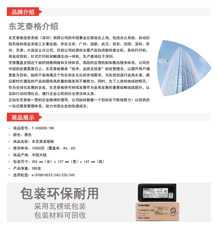 | 特点 | 原装耗材,环保品质,稳定实现高品质的打印输出,带给用户清晰可控的成本保障。 | |