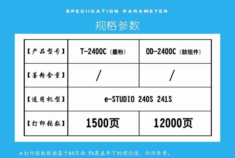 | 商品简介 | 适用于东芝 240S 241S 打印量约12000页 | |