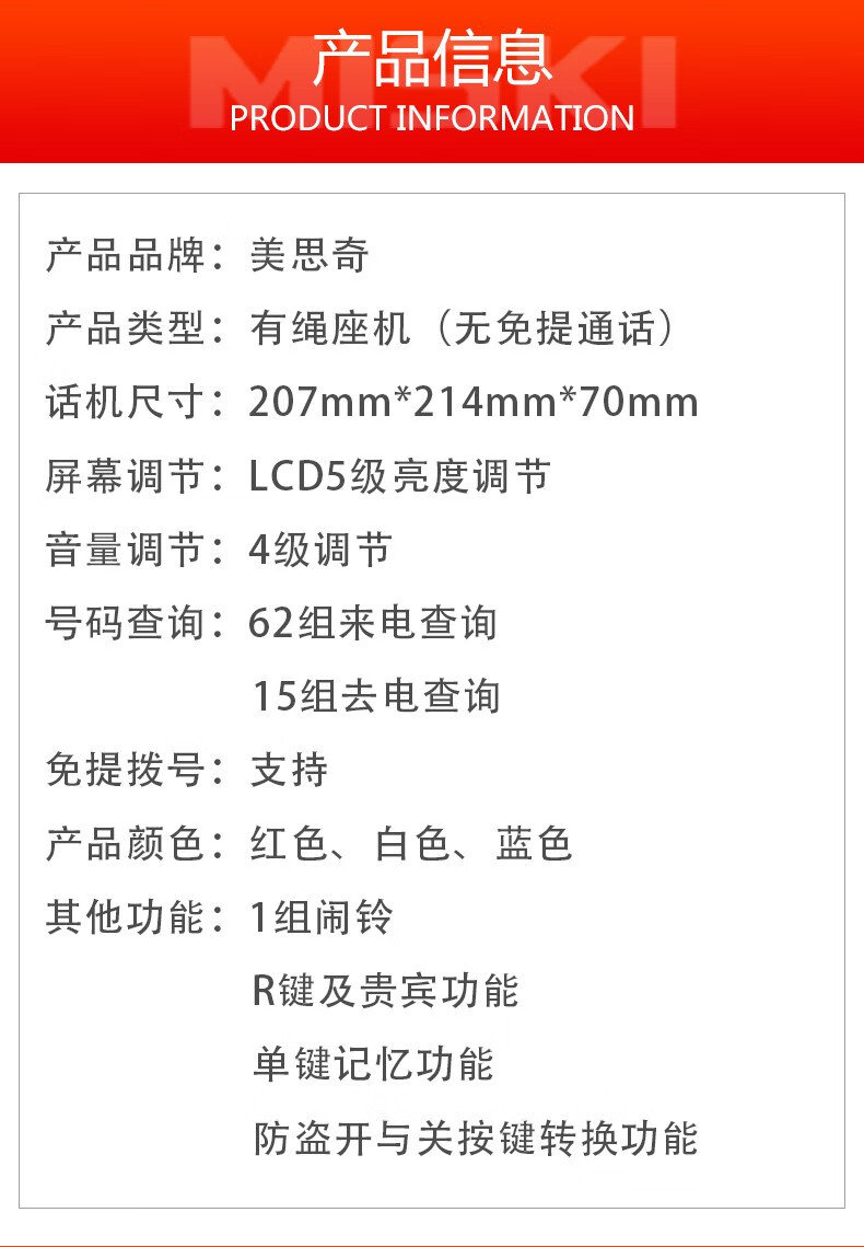 美思奇 MSQ 8018来电显示电话机