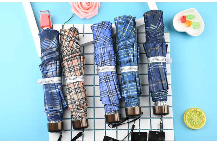 天堂伞男女可用格子伞折叠钢三骨经典格子雨伞晴雨伞经惠