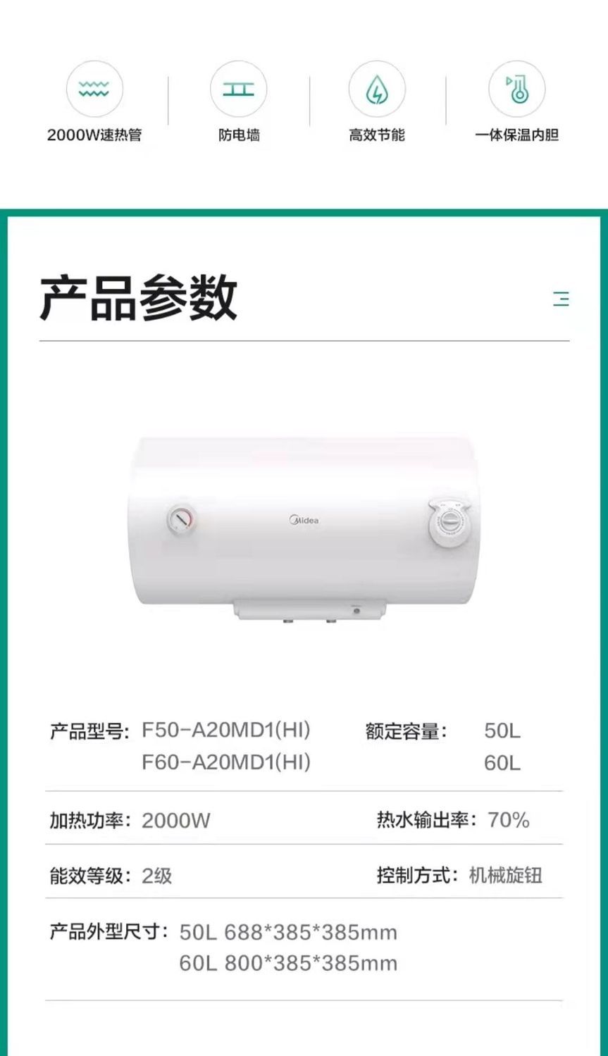 美的(Midea)F50-A20MD1(H1)热水器50升